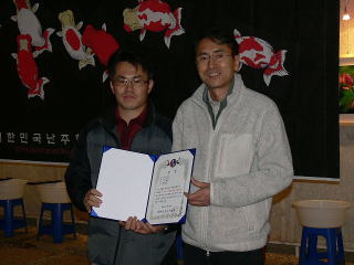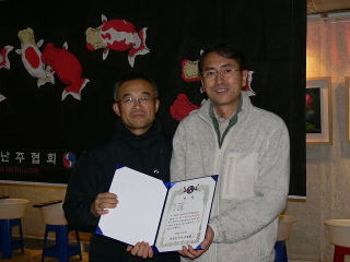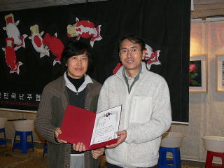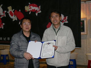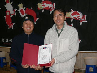 品評会後は会員の皆さんと恒例の楽しいお食事会です。 会員の皆さんには今回も大変お世話になりました。本当にありがとうございました。 韓国らんちゅう協会の更なる発展を期待しております。