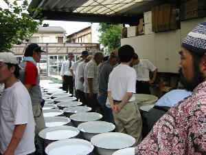 みなさん首にタオルで、汗ダラ状態