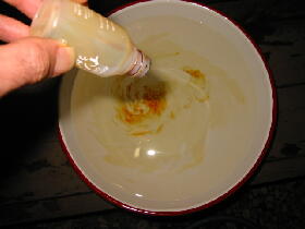 B 1リットルに対し2〜3滴を洗面器にたらします。