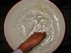 洗面器の水はぬるま湯でした。