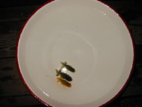 D 5分間薬浴させてから、0.5%の塩を入れた舟にもどします。1日〜2日後に再度繰り返します。
