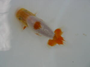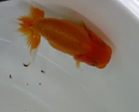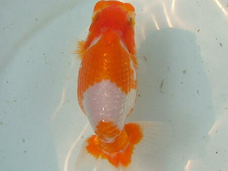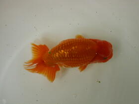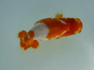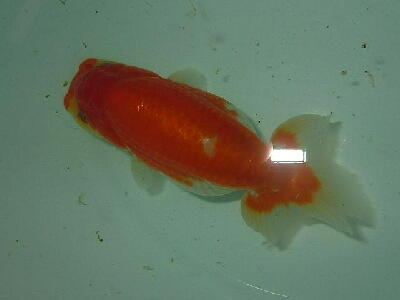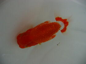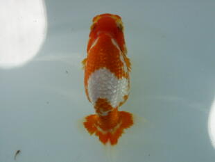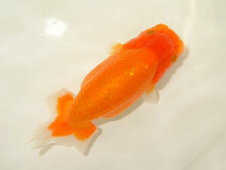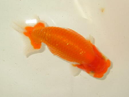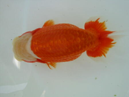 お友達のしょうちゃんらんちゅうの親(雄雌)で仔引きした仔です。9.5cm