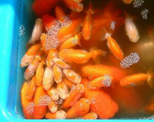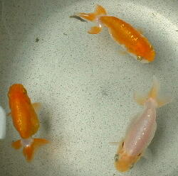 今回は、ギャラリーの持ち魚(二歳〜三歳)数匹と、二番仔が数匹、らんちゅう御意見番の