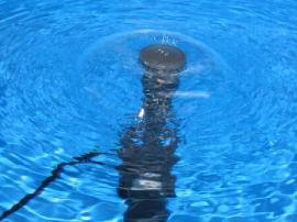 噴水ヘッドが水流を抑えています。(こりゃ!見ていても涼しい!)