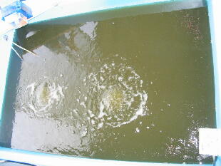 取り除く必要はありません。また、水換えも頻繁にしてはいません。ある程度密飼いにしなくて はバクテリアが活性できません。今までの常識とは全く逆の飼育方法となります。