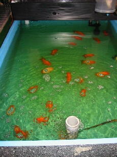 った室内の場合、空気がよどんでいますので、いくら室内の空気をエアーレーションをしても水 が蒸れてしまいます。(室内飼育で病気の最も大きな原因)
