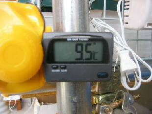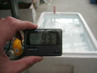 30分経過後には、水温9.3℃(−0.1℃)でしたがこのまま足水を行いました。