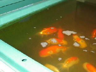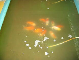 ここ5日間高い気温・水温が上昇しています。魚の様子を見ながら食べれる量ほど餌を与えて