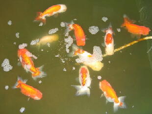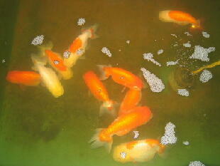 私が近づくと寄ってきます。しかし,魚の動きが鈍く感じられます。