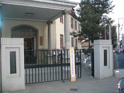 帰りに通りががりの女性に校門の前で記念写真を撮ってもらいました。