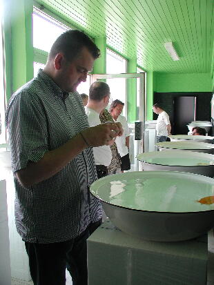 Kingyo Hozonkai of Belgium.)メンバーは32名いるそうです。驚くなかれ、らんちゅう歴は18年 の大ベテランです。(いったい18年も前に何処から魚を入れて、誰に飼育や仔引きを教わった んでしょうね?)