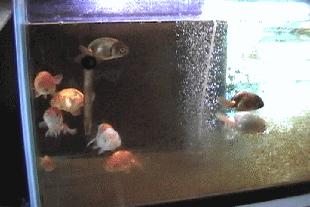 夜店の金魚15尾のごった煮状態、もちろんバイオ飼育中。(左下) |