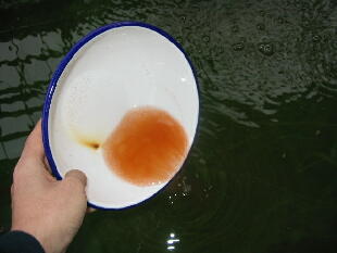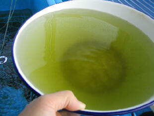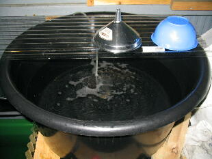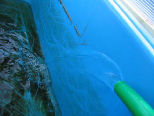 元水(バイオ飼育水)洗面器一杯とっておき、更水に足します。 |