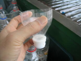 ブラインエッグを孵化容器(ペットボトル)に入れます。