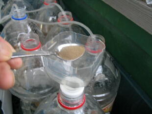 口が狭いので、ペットボトルを切って上戸代わりにしています。