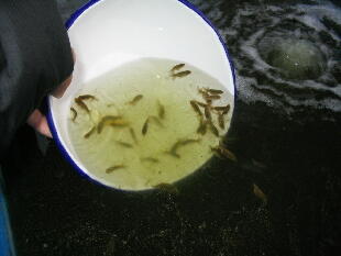 魚を戻します。入れた後しばらく魚観察してくださいね。 |