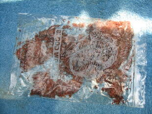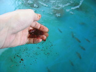 赤虫を与える場合、暫らくの間は下記のように砕いて与えると魚達も食べ易いです。