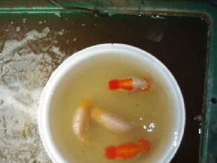 際、くどいようですがバイオ飼育舟はタワシやスポンジで洗わないでください ね。必ず秋までに品評会サイズのらんちゅうがつくれますよ!