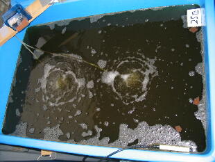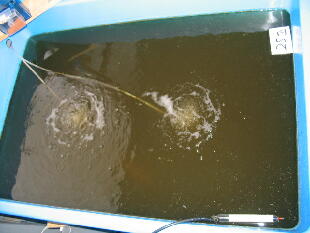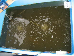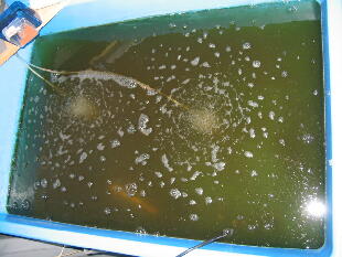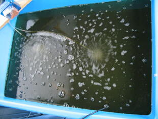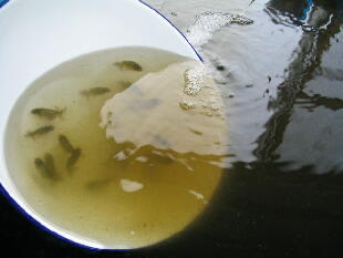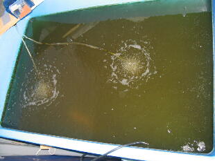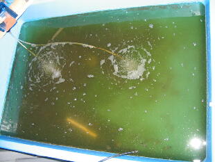 するために足し水のみでしばらくの間引っぱりますが、プラ舟の底や縁にバイオバクテリアがし っかり付いていますので、いつ水換えしても大丈夫ですよ。魚が見えないと不安ですよね。また 黒仔が餌を求めてヒョコヒョコ泳ぐ姿を観るのも楽しみの一つですからね・・・・特に選別する時 は水換えした方が良いかもしれません。 再度、お知らせいたしますが、水換えの遅れによる病気で魚を殺してしまい、秋まで育てきれ ないご経験を持つ方も多いと思います。特にらんちゅうは観賞も目的ですので、下記のように 考えていただけると良いかもしれません。 仕事が忙しく、週1回日曜日しか水換えができない場合、水換え後、最初の3日間(日月火)は バイオシークスルーの投入はしないで4日目から7日目(水木金土)までバイオを投入します。 毎週日曜日に水換えですね。(水換え時は舟をタワシやスポンジで洗わないようにしてくださ い) このような飼育方法でいけば、魚の観賞も楽しめるし、水換えの遅れによる飼育水の腐敗(病 気)を避けることできます。魚も適度に更水で刺激されますので、より大きくなると思います。