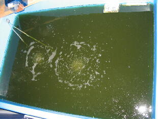 カビ等の菌の方が優勢種になってしまう場合もあります。通常飼育でも、水面に風が通る(あ たる)ことは、皆さんが思っている以上に重要なことなんです。らんちゅうの病気の発生率もは るかに違うはずです。特にエアーポンプの置く位置は許される限り、風通しの良い新鮮な空気 が取れる場所に置くことをお勧めします。