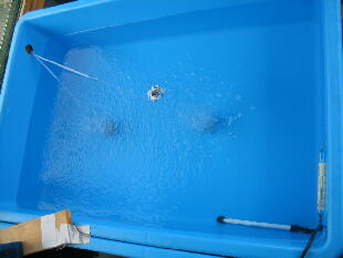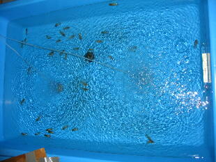 があるようです。当歳(成長期)にはある程度水換えしながらバイオ飼育した方が良い魚がで きそうです。(特にブラインシュリンプの時期は水換え重要!)来年は定期的に水換えをうまくし ながら、大会用の魚をバイオ飼育(プラ舟)で作ってみましょう!(自信たっぷり!)