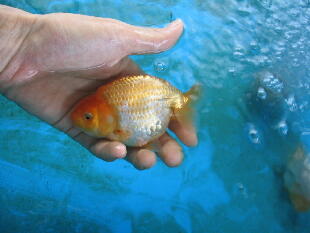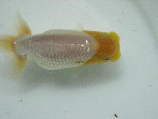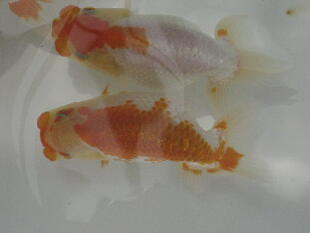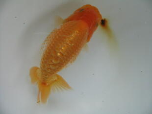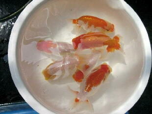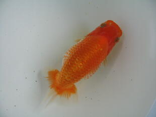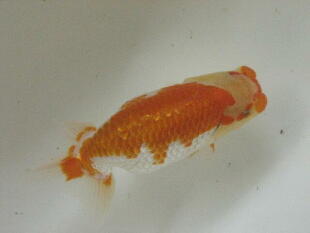 ちょっと腹が付き過ぎましたね。頭は黄頭に上がってきました。色揚げの餌はまだ、一切あげていません。 |