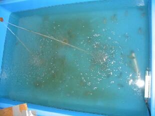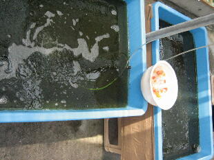 これから、種魚用にバイオ飼育舟をどんどん広げていきます。 |