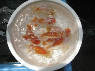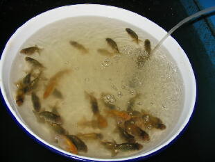 古水と一緒に魚を洗面器にすくいました。 |