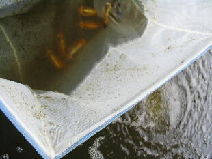 手探りで一匹捕まえました。またまた成長して、11cmぐらいのサイズになっていました。