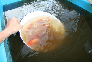 1.十分に立ち上がったバクテリア飼育舟の魚を全て、新規の舟(更水)に移します。