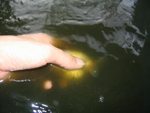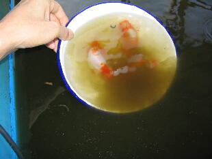 <結果>初日は水面で「ぼ〜」としていましたが、2日〜舟底に潜り餌を食べているよう