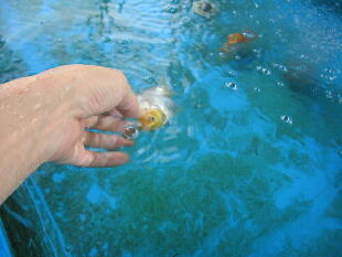 2.二日目には魚の姿が見えなくなました。手探りで魚を捕まえようとしましたが、元気に