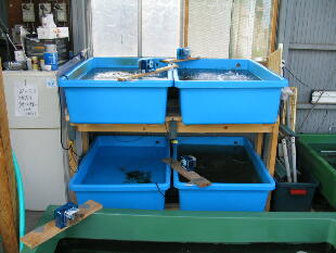 経験する魚)を入れ、十分にバクテリア飼育になじんだ魚を新規立ち上げ(更水)の舟に 移してバイオ飼育舟を増やして行くと、実にスムーズにバイオ飼育舟を増やしていくこと ができます。