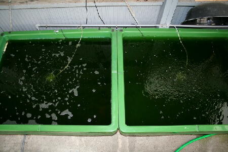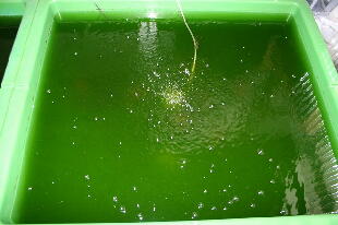青水飼育の舟は少しずつ割り水しながら、青水を作りました。