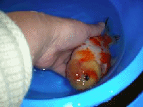 たまちゃんなら大切にの育ててくれるので、水槽飼育用にらんちゅう(二歳)を一匹プレゼントし