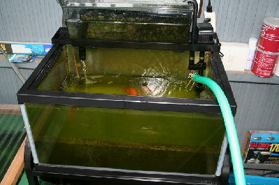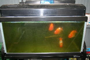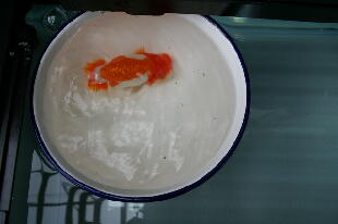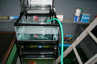 バイオ分水もHPの様にします。バイオの金魚なら洗面器1杯で種水O.K、バイオ飼育の金魚で