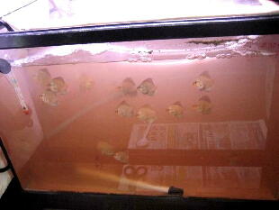 ディスカスフードの関係で飼育水が赤くなっているそうです。