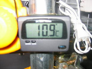 今朝の気温と水温です。10.9℃台は,気温で14.7℃は,水温です。