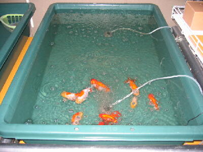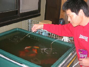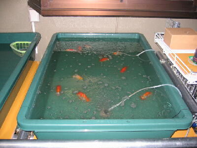 隣の舟にはすでに1/3の水替え用の新水が入っていました。その後カラの舟に昨日購入した