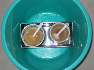 断熱材(シルバ−)を舟の大きさにカットしキャラメルを包む様に舟に巻きました。巻くのはテ− プを使わず宅急便用のヒモ(硬いビニ−ル)を上と下2カ所にグルグル巻きにし完了。