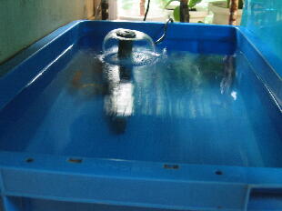 実験途中からより効率を上げるためにエアーカーテンをとりはずし水流を強くしました。