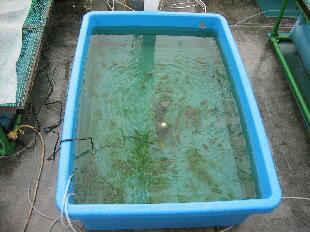 早速、新水を0.8%の塩水にしイッシー装置をセットしエラ病の魚を入れる。