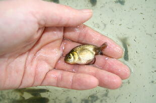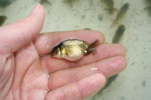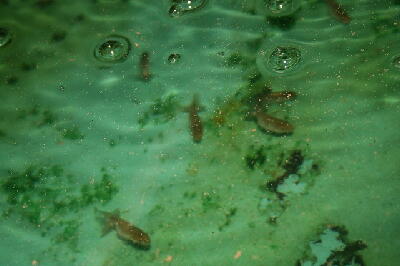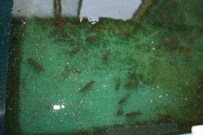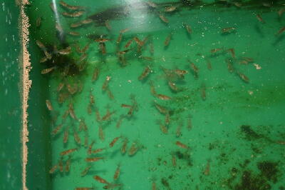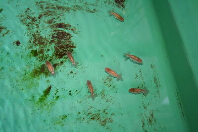 現在、4月4日孵化の2番仔を40匹入れています。先週は50匹でした。2番仔は他の舟にも