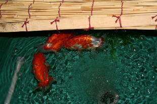 早い品評会まで僅か4ヶ月となります。たった四ヶ月の間に何回もエラにしてしまうと、とても品 評会間に合わなくなります。健康状態を良好(餌を追い求めて泳ぐ状態)に保てれば、魚はど んどん大きくなります。病気による体形の崩れも少ないですね。