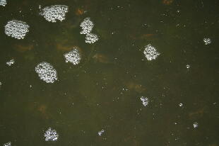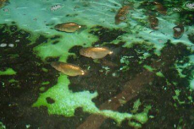 バイオバクテリアは水中に浮遊するものではなく、ろ材となるような舟の周りの苔、また糞や食