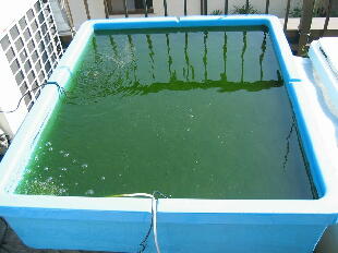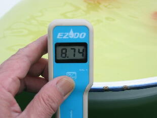 水換え前の青水のPHが9.01で水換え後が8.74です。(天候はうす曇なのでやや低めです)