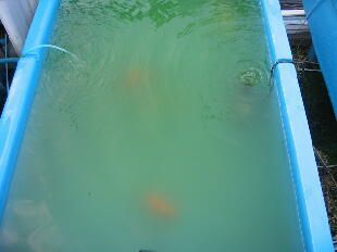 青水が進んで魚の姿が全く見えませんが、装置を使っているので安心していました。