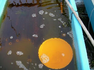 水生菌さえ死滅する腐敗が洗面器の中で進行します。酸欠による嫌気性菌による硫化水素の 発生でどんどんと受精卵は死んで行き、またそんな中で頑張って孵化した稚魚も洗面器の硫 化水素の毒でどんどん死んでいきます。