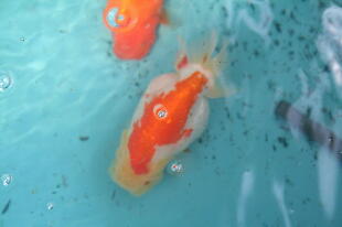 凍ミジンコや冷凍赤虫・粒餌など何でも食べれるように与えてみてください。色変わりが始まる と魚が痩せてしまうので、色変わり前にできるだけ太くなるようにしたいですね。