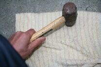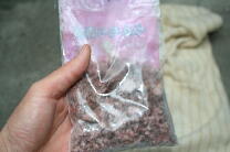 赤虫は凍ったままかなづちで砕いて与えると食べやすいので、しばらくは砕いて与えます。